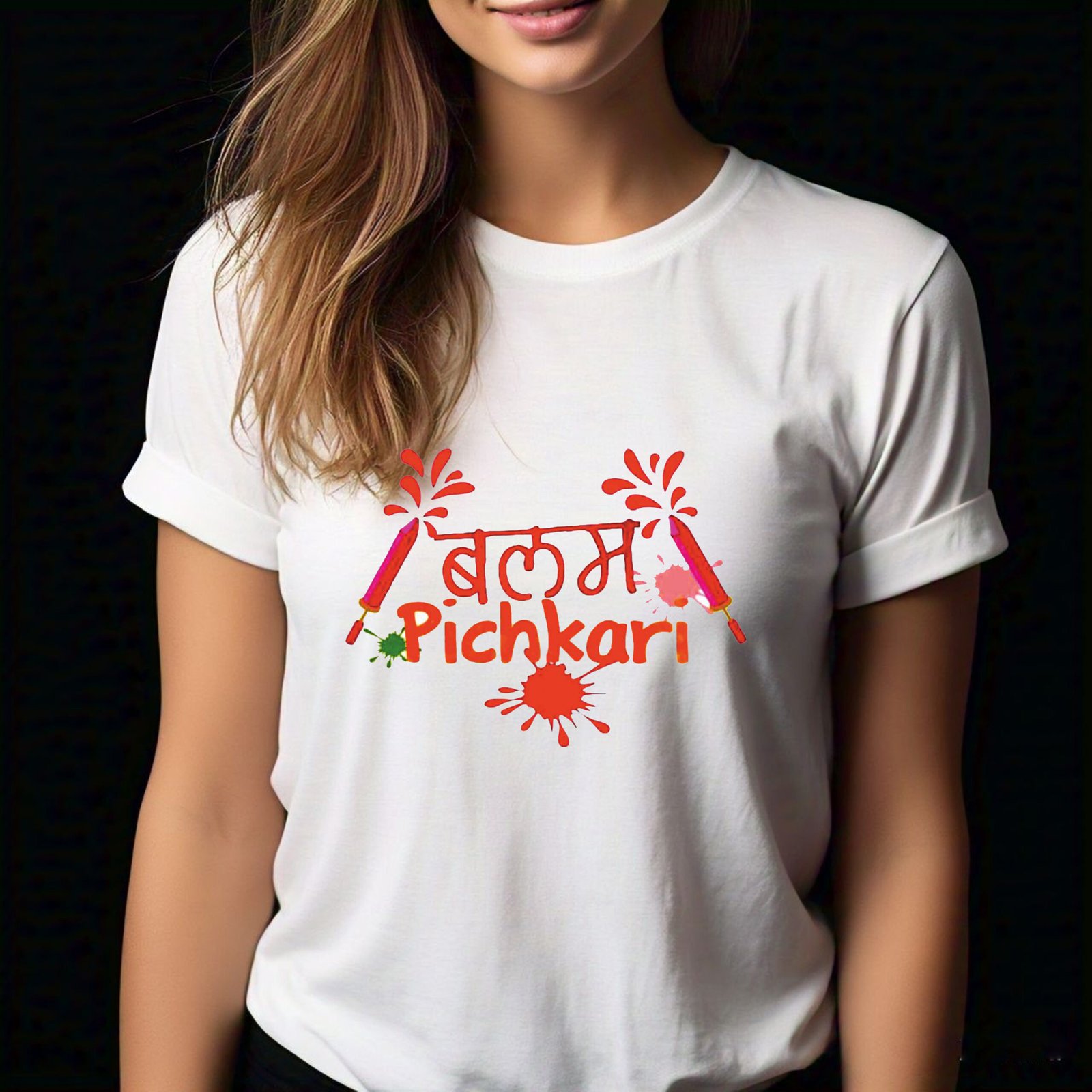 - Pattern: The “Balam Pichkari” print adds a playful and energetic vibe. Therefore, it brings festive cheer to your Holi wardrobe.