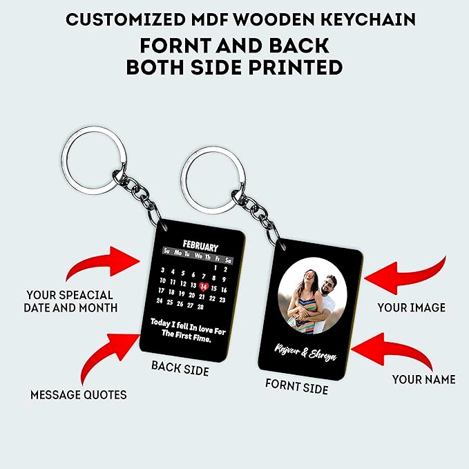 Personalized Couple Calendar keychains are available at Memorizer for your loved ones. Customized Photo keychains make unique and special gifts for birthdays, anniversaries, marriages, and other memorable events.
