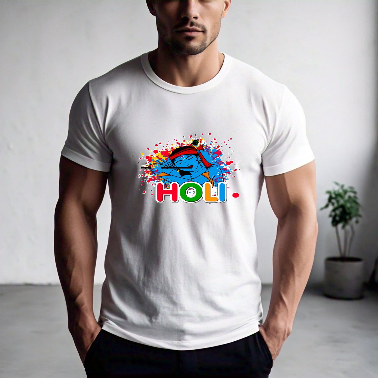 - Pattern: The print features the word “Holi” in bold text, surrounded by an image of Lord Krishna, with colorful splashes that add a festive and celebratory touch.
